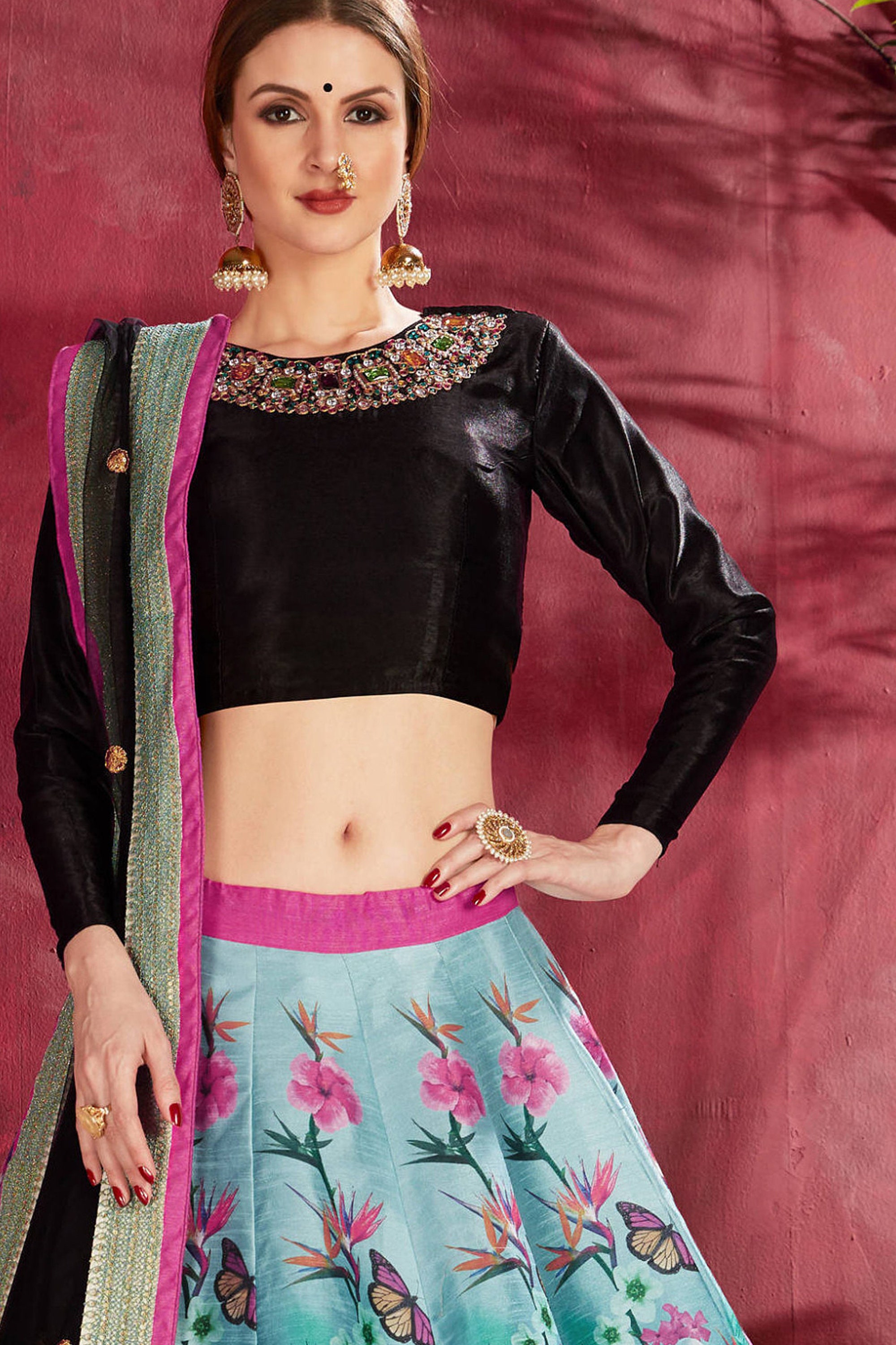 Buy Multi Color Designer Wedding Floral Print Embroidered Lehenga Online In India Etsy